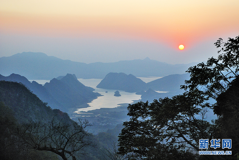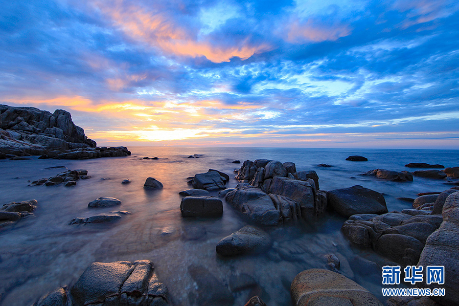 棋子灣的霞光。新華網(wǎng)發(fā)