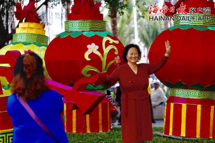 花燈造型共有十幾種,有卡通人物、蓮花、生肖豬、年年有魚等,顏色鮮亮,格外引人注目。據海南日報客戶端記者陳若龍 攝