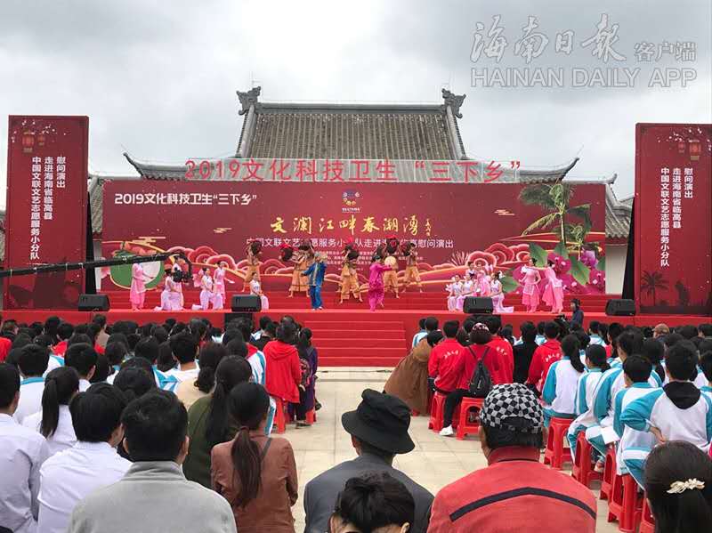 “聽說黨中央的文化文藝小分隊(duì)要來我們這邊演出,我?guī)滋烨岸几吲d的把這個(gè)消息告訴了外村的親朋好友,他們今天一大早就趕到了這里?!?2月28日上午,以“文瀾江畔春潮涌”為主題的2019文化科技衛(wèi)生“三下鄉(xiāng)”中國文聯(lián)文藝志愿服務(wù)小分隊(duì)走進(jìn)臨高慰問演出(以下簡稱慰問演出)在臨高縣臨城鎮(zhèn)拉開帷幕,對演出期待多時(shí)的臨城鎮(zhèn)市民陳天明喜悅之情溢于言表。
