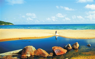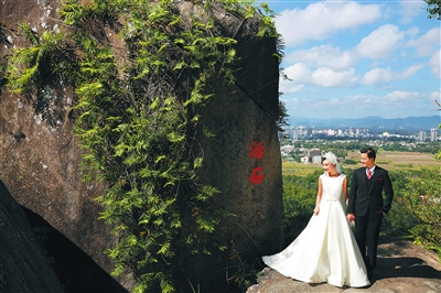 一對(duì)情侶在萬(wàn)寧日月灣拍攝婚紗照。本報(bào)記者 張杰 通訊員 曾覺 攝