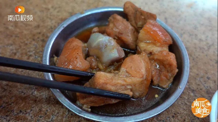 簡陋的玻璃櫥窗邊擺放著豬腳、豬尾巴、牛腩、牛雜之類的特色美食↓↓↓