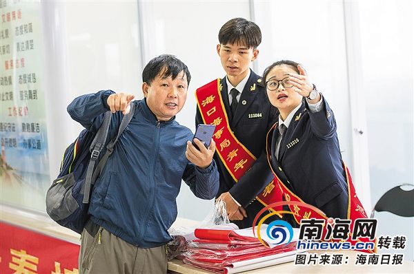 1月21日,海口新海港客運大廳內(nèi),海事志愿者為過海旅客提供咨詢服務(wù)。海南日報記者 宋國強 攝