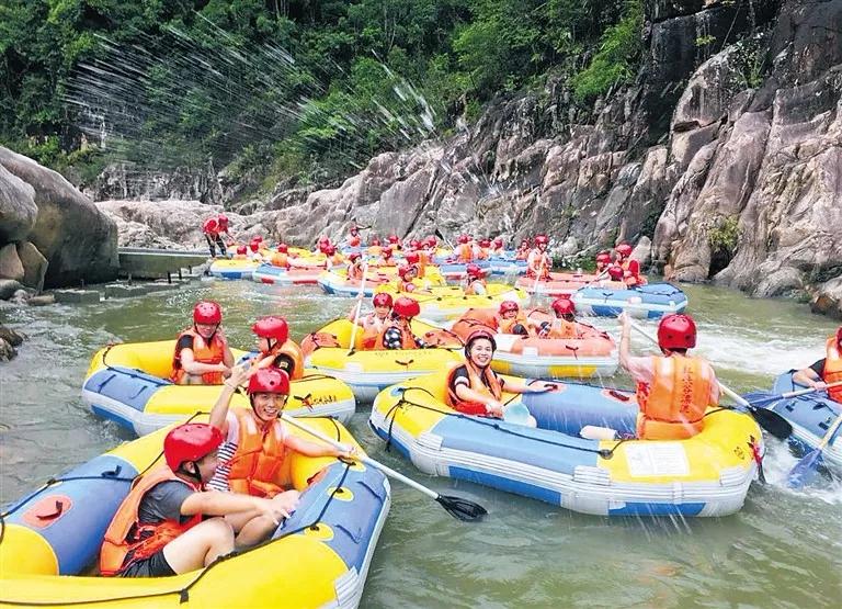 ↑10月5日,五指山紅峽谷漂流景區(qū),游客體驗(yàn)山地漂流。海南日?qǐng)?bào)記者 武威 通訊員 劉培遠(yuǎn) 攝