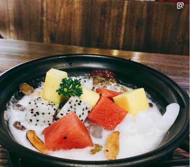 清補涼 清補涼主要根據當地的氣候,生活習慣,采用的是消暑降溫的原料。一般清補涼的原料至少有10多種,比如花生、紅豆、綠豆、通心粉、新鮮椰肉、紅棗、西瓜粒、菠蘿粒、鵪鶉蛋、涼粉塊、珍珠、薏米、芋頭等。海南的清補涼攤點大多設在路旁,攤主們擺放一小櫥窗,旁邊擺上一個保溫冰桶、幾套塑料的椅子和木桌,加上清補涼攤的小櫥窗里排滿塑料碗,碗里面分別裝著黃、紅、綠等各種原料。