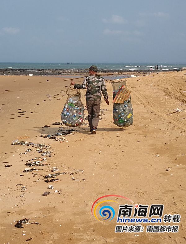 不同于不見光的海底垃圾,散落在沙灘上的海岸帶垃圾,早已被許多人所關注。自從一年多前來到儋州市白馬井鎮后,候鳥老人岳國士經常去海邊休憩。來自河南的他,喜歡看蔚藍的大海,可是海灘上的垃圾,卻讓他歡喜不起來。