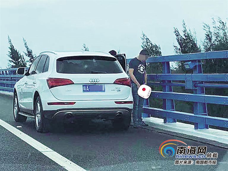 南國都市報熱線966123訊(記者 田春宇)這兩天,海文大橋無疑是海南的“熱點話題”,一位奧迪白色汽車“瓊A55**6”的乘客也跟著蹭上熱度“火”了,只是有點尷尬,該車在橋上違停,一位男乘客在旁邊“方便”的時候,被路過的市民抓拍下這“尷尬”瞬間而不自知。