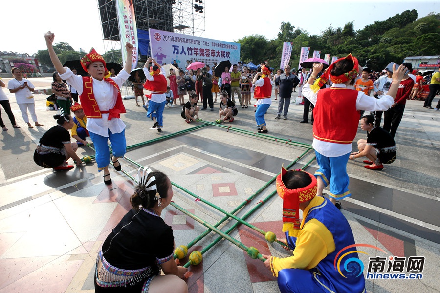 瓊中萬人齊跳竹竿舞,共慶“三月三”節慶。南海網記者陳望 攝