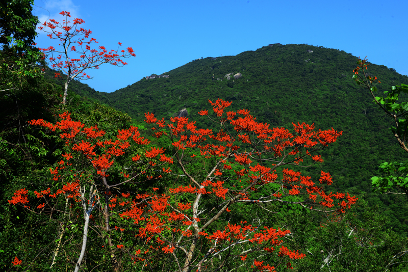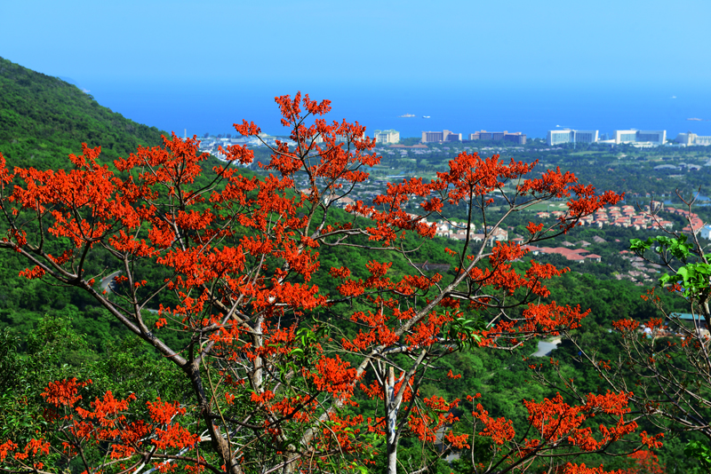 圖為每年的“五一”節期間,亞龍灣熱帶天堂森林旅游區盛開的美麗梧桐花景象。(黃慶優攝)