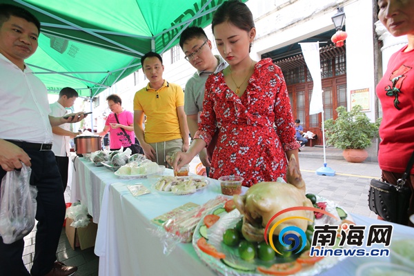 2019“拾味海南”評選嘉年華在??隍T樓老街舉行,展出的文昌雞。南海網記者陳望 攝