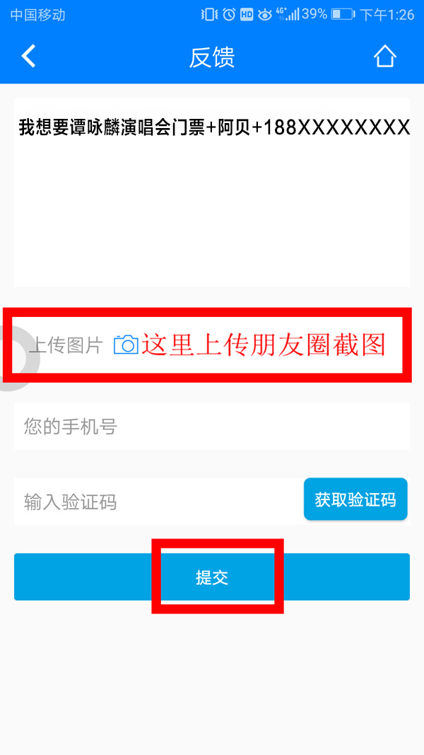 第二步:打開南海網(wǎng)客戶端,點(diǎn)擊右上角,進(jìn)入留言反饋?lái)?yè)面填寫:“譚詠麟演唱會(huì)門票+姓名+電話”(舉例:譚詠麟演唱會(huì)門票+阿貝+188XXXXXXXX),并將朋友圈分享截圖上傳,提交后即可成功參與活動(dòng)!
