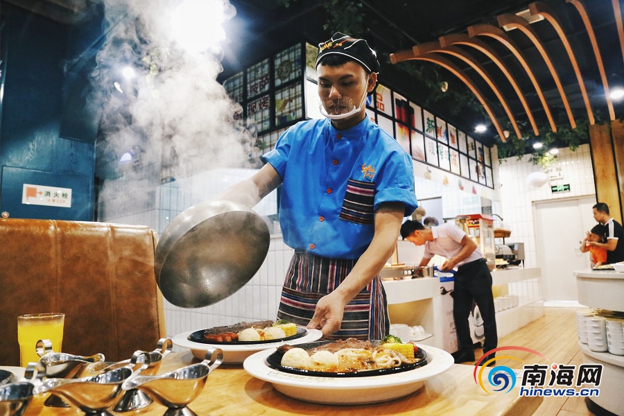 師傅掀開蓋子,牛排的熱氣蒸騰而出。南海網(wǎng)記者 姚皓 攝