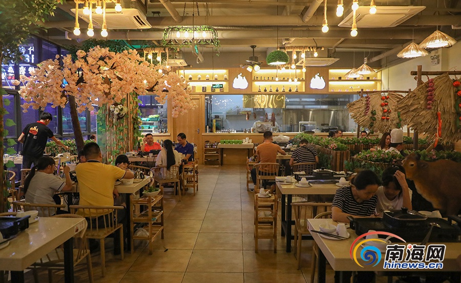 薄切的嫩牛肉經過腌制,煎鍋中倒入些許花生油,牛肉下鍋煎2至3分鐘后,夾起滿筷嫩肉,一口咬下汁水溢出,香嫩無比……每當夜幕降臨,在位于海口市秀英區美俗路的尋嘗里夜市,一場場美食盛宴上演,主營定安牛肉火鍋、自助燒烤的牛焰餐廳,也成為食客尋味夜市的佳選。