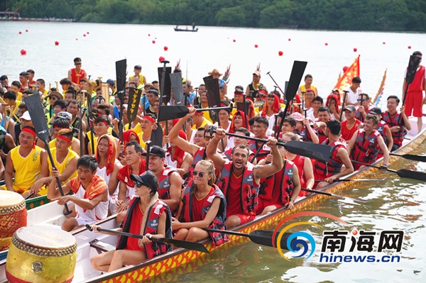 海南旅游頭條、南海網、南海網客戶端三亞6月2日消息(南海網記者 劉麗萍)6月2日,由中共三亞市天涯區委、天涯區人民政府主辦的“2019天涯共此時端午龍舟邀請賽”盛大舉行,15支隊伍在三亞河上龍舟競渡,由22名外國友人組成的國際隊成為賽場焦點,為三亞市民及游客獻上了一場精彩的水上盛宴。
