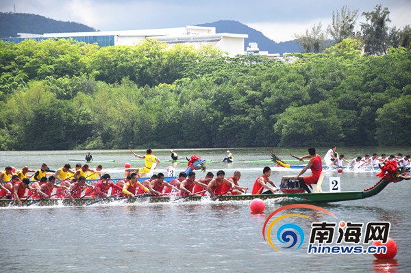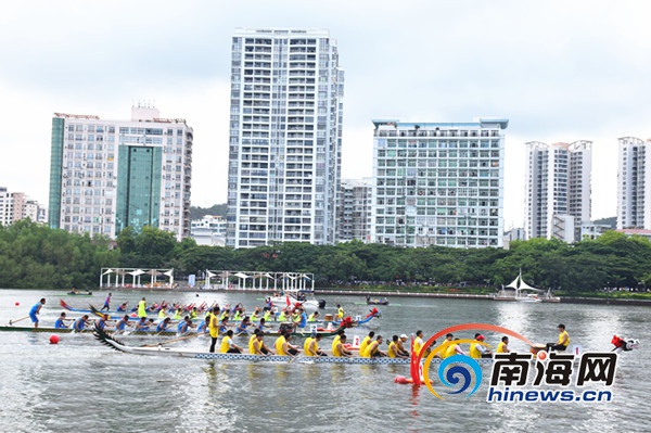來自各行各業的15支隊伍在三亞河上龍舟競渡。南海網記者 劉麗萍 攝
