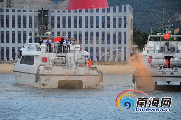 6月13日下午,三亞2019年旅游船舶消防溢油應急演練在三亞蜈支洲島旅游景區舉行。南海網記者 沙曉峰攝