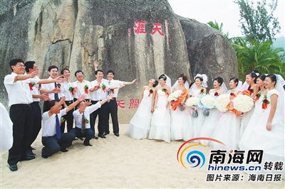 按照“創辦品牌活動、提升旅游知名度”這個思路,1996年底,我們又舉辦了首屆天涯海角國際婚慶節,吸引了國內外50多對新人參加。天涯海角國際婚慶節為三亞后來發展婚慶旅游產業奠定了基礎。