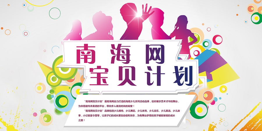 “南海網(wǎng)寶貝計(jì)劃”是由南海網(wǎng)著力打造的海南少兒系列活動(dòng)品牌,其重新定義了少兒培訓(xùn)“媒體+賽事+培訓(xùn)”的新模式,品牌系列活動(dòng)包括少兒模特、少兒舞蹈、少兒體育、少兒音樂(lè)、少兒英語(yǔ)、少兒故事、小記者夏令營(yíng)等多個(gè)內(nèi)容,大大促進(jìn)了少兒系列活動(dòng)的健康發(fā)展。