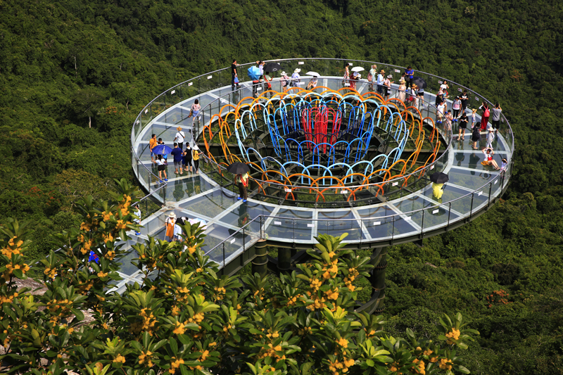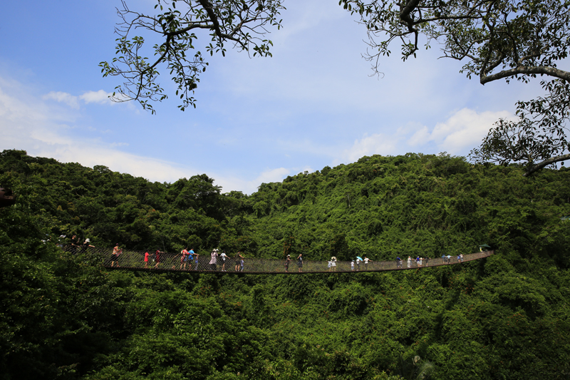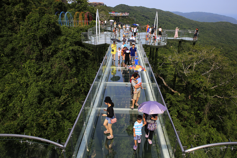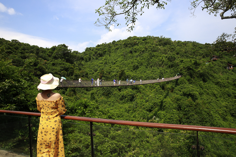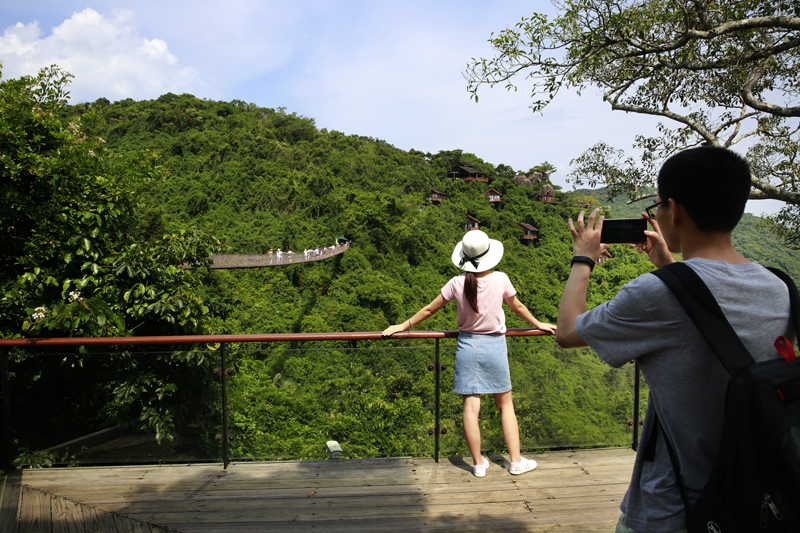 8月7日,中外游客激情暢游三亞亞龍灣熱帶天堂森林旅游區(qū)的情景。(黃慶優(yōu)攝)