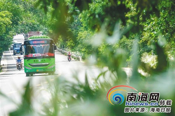 8月15日,在昌江黎族自治縣棋子灣旅游公路上,一輛新能源公交車正從縣城開往十月田鎮(zhèn)。昌江目前在運營的城鄉(xiāng)新能源公交一共有56輛,今年在城鄉(xiāng)新增投入使用的新能源公交車有5輛,大大改善了城鄉(xiāng)間的交通出行狀況。