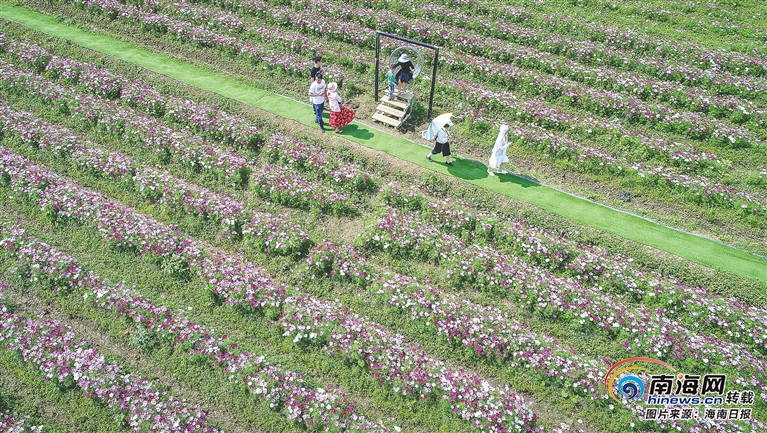 游客行走在瓊海龍壽洋花海間,盡享芬芳。