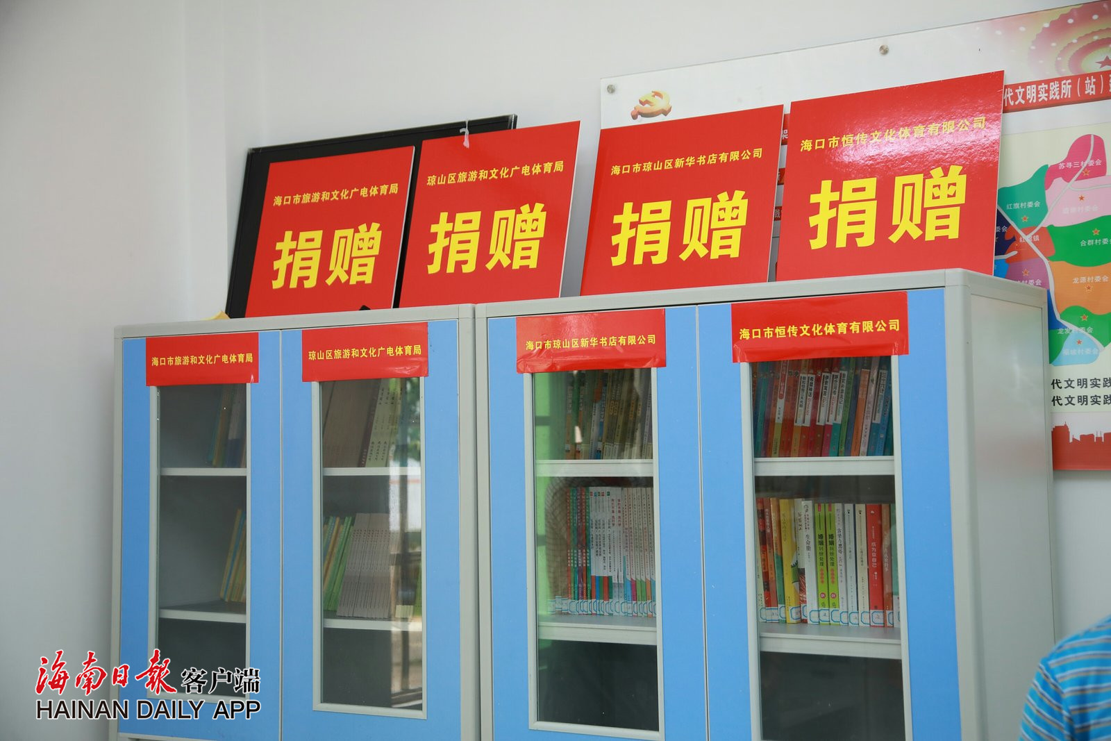 ↑社會各界愛心人士為海口市瓊山區紅旗鎮本務村贈送圖書。