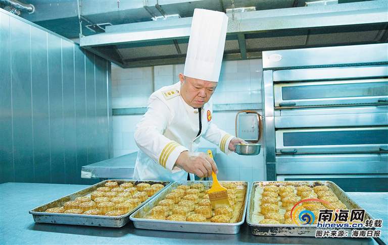 海南省非物質文化遺產項目瓊式月餅制作技藝傳承人、國家注冊烹飪大師符志仁在制作月餅。 海南日報記者 宋國強 攝