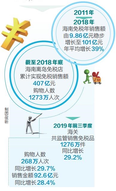 如何將更多的消費(fèi)及資金留在國內(nèi)?在對這一問題的回答中,離島免稅政策發(fā)揮著不可忽略的重要作用。數(shù)據(jù)顯示,從2011年至2018年,海南免稅年銷售額由9.86億元穩(wěn)步增長至101億元,年平均增長39%;購物人數(shù)由48.36萬人次增長到288萬人次。截至2018年底,海南離島免稅店累計(jì)實(shí)現(xiàn)免稅銷售額407億元,購物人數(shù)1273萬人次。