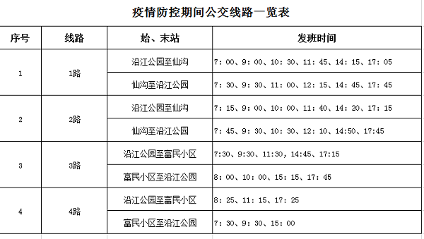 1、疫情防控期間公交線路一覽表