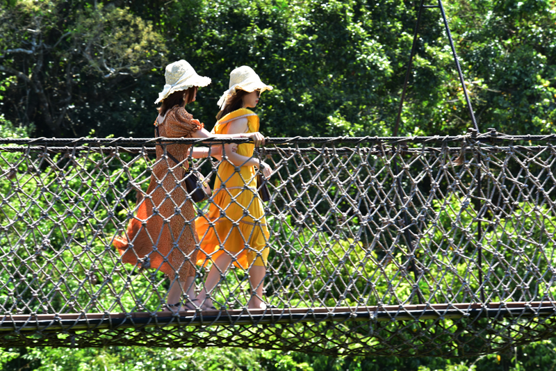 “走在雨林中感覺比較涼爽的,這里溫度相對低一點,感覺很舒服的!”來自本島儋州的游客金小妹激動地說。