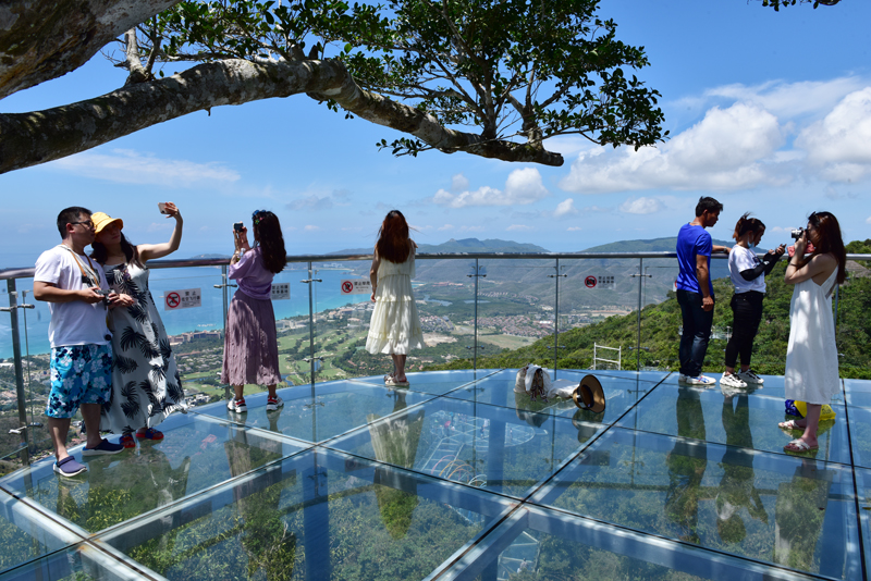 夏日的雨林花果飄香,蟬鳴陣陣,雨林氣溫適中,旅游環(huán)境愜意。來自河北、浙江、陜西、四川和本島的游客快樂地在景區(qū)參觀游覽,體驗熱帶雨林清涼游。三五成群的游客愉快地漫步在雨林中賞花觀景,登高望遠(yuǎn),探秘?zé)釒в炅郑谟炅种小吧焙粑惺芟娜諄嘄垶碂釒焯谩扒鍥鲆幌摹钡臉啡ぃI(lǐng)略亞龍灣熱帶天堂景區(qū)夏日旖旎多彩的美麗風(fēng)光。
