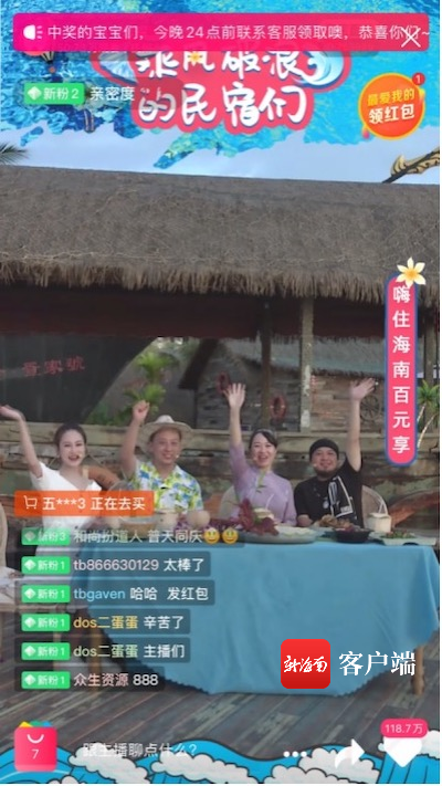 新海南客戶端、南海網(wǎng)、南國(guó)都市報(bào)5月25日消息(記者 蘇靚)為推廣海南的特色民宿,讓更多游客領(lǐng)略海島獨(dú)特的風(fēng)土人情,日前,海南啟動(dòng)“乘風(fēng)破浪de民宿們”海南省特色民宿專場(chǎng)直播推介活動(dòng)。短短2小時(shí)的淘寶直播,海南民宿銷售額突破200萬(wàn)元,直播累計(jì)觀看人數(shù)超過(guò)50萬(wàn)人次,互動(dòng)量超180萬(wàn)人次。