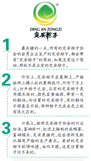那么問題來了,怎樣辨別哪些才是正宗定安粽子?對此,定安粽子協會會長王沸健提供了三個快速識別正宗定安粽子的方法。