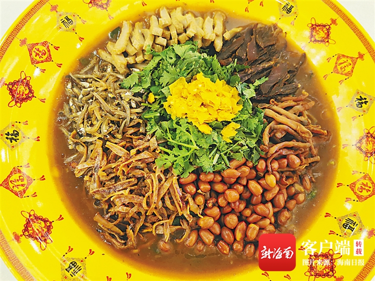 陵水酸粉是當(dāng)?shù)靥厣〕?,用米粉絲、牛肉干、沙蟲干、魚餅、香菜、酸醋、辣椒等十多種食料配制而成,具有甜、酸、香、辣等特點(diǎn),深受大眾喜愛。