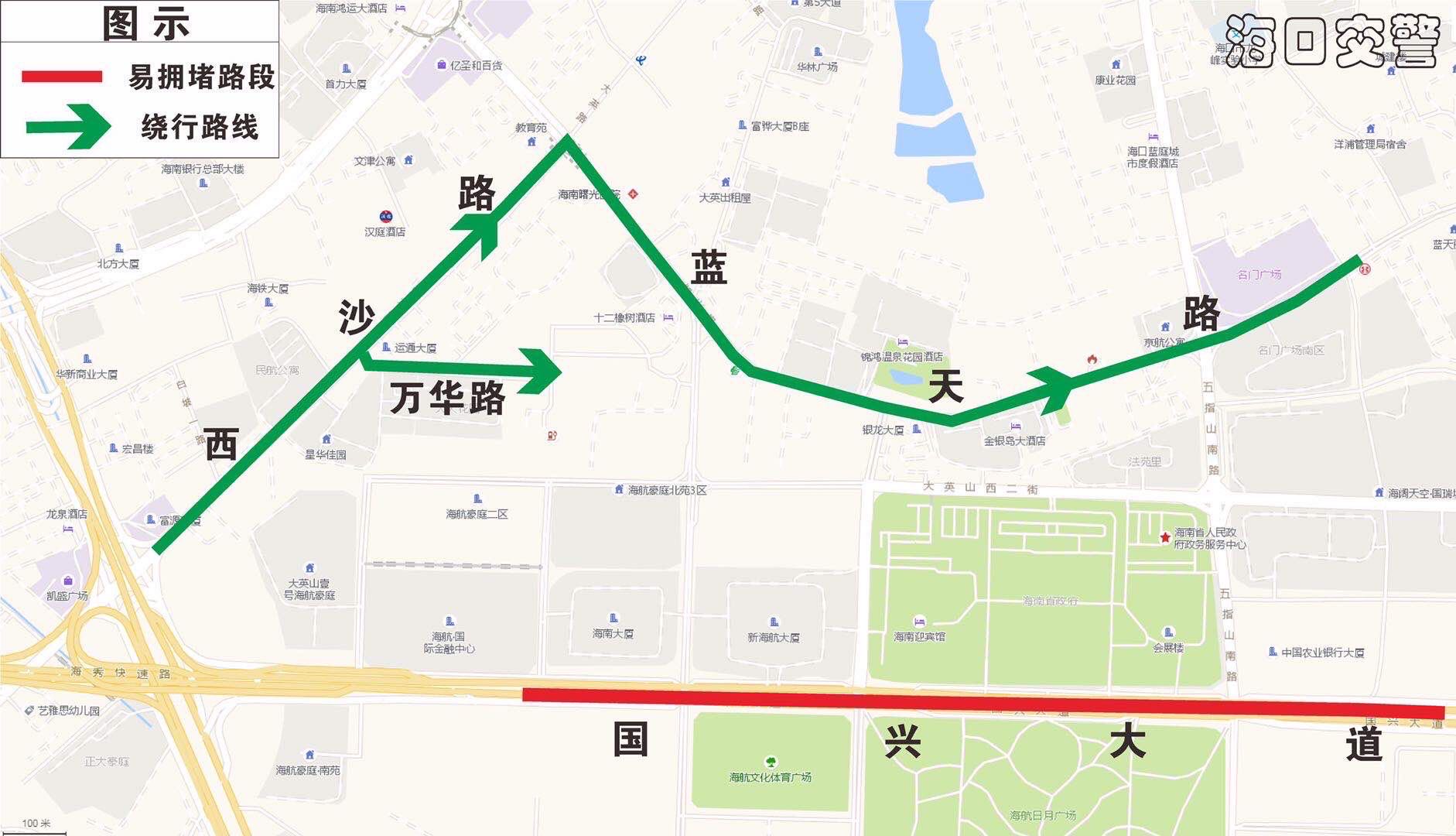 預計6月24日下午、6月25日上午和27日下午世紀大橋→龍昆北路→南大橋→龍昆南路→迎賓大道雙向、國興大道→瓊州大橋、濱海大道、海府路→瓊州大道等進出市區主干道交通流量集中,通行緩慢。請廣大駕駛人及時掌握路況信息,合理安排行程,盡量錯峰出行或視情況擇道進出城。