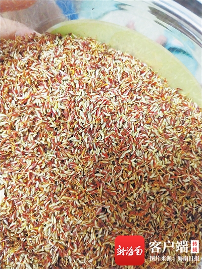 薜荔水是什么?帶著好奇,海南日報(bào)記者走向前去,熱情的小販許阿姨打開保溫桶,映入眼簾的,是一桶酷似白涼粉的凝固物。“這就是用薜荔果做成的薜荔涼粉,夏天人們都很喜歡喝。”許阿姨拿出一個(gè)塑料杯,搗入些許薜荔涼粉,攪碎后,再加入冰鎮(zhèn)過后的紅糖水,將一杯薜荔水遞給記者。