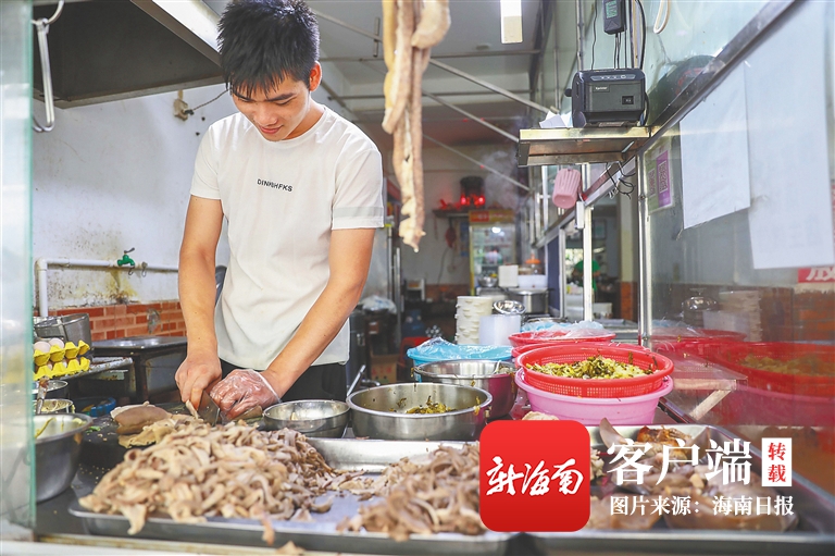 “過去的人們干活苦,早上一定要吃得實實在在,才有力氣干活。”在熱鬧非凡的辣湯飯店里,老板娘陳大姐早已習慣了每天凌晨3點就起床煮湯的生活。她介紹,辣湯飯過去是海口開埠時期碼頭搬運工人的早餐,工人們都是天還沒有亮就要到碼頭出工,所以飯店要在開工前把食物準備好,才能夠滿足工人們補充體能的需要。