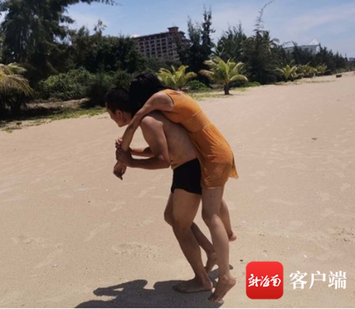 三亞市公安局天涯分局三亞灣派出所路管員許芮和盧雨果接到指令后,立即趕到現(xiàn)場(chǎng),許芮迅速脫下警服沖進(jìn)海里救人,并成功將張先生女友救上岸。
