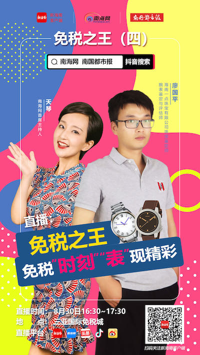 本期《免稅之王——黃金購物袋》,我們將帶您來一場海南免稅名表購物之旅。天梭、萬國、浪琴……免稅名表有多優(yōu)惠?品牌有多給力?8月30日下午4:30,新海南客戶端,南海網、南國都市報抖音號將邀您一同探店,屆時,海南一點珠寶有限公司珠寶鑒定師、腕表鑒定與評估師廖國平將獲邀作為評測嘉賓,帶大家一起品鑒各類名表。我們在直播間不見不散,敬請關注。