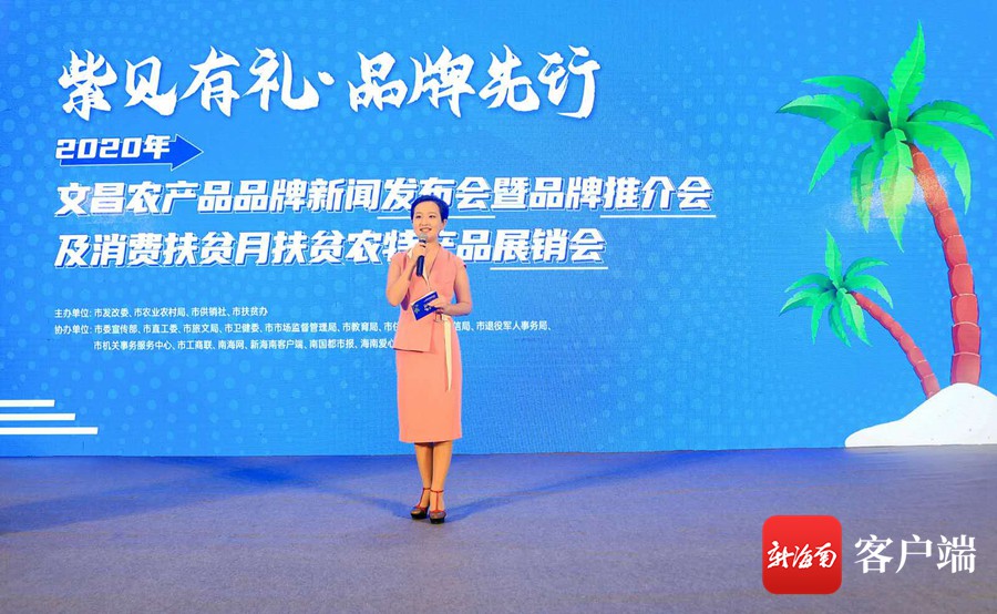 9月26日上午,紫貝有禮·品牌先行——2020年文昌農(nóng)產(chǎn)品品牌新聞發(fā)布會(huì)暨品牌推介會(huì)及消費(fèi)扶貧月扶貧農(nóng)特產(chǎn)品展銷(xiāo)會(huì)在文昌金石國(guó)際大酒店舉行。(活動(dòng)主辦方供圖)