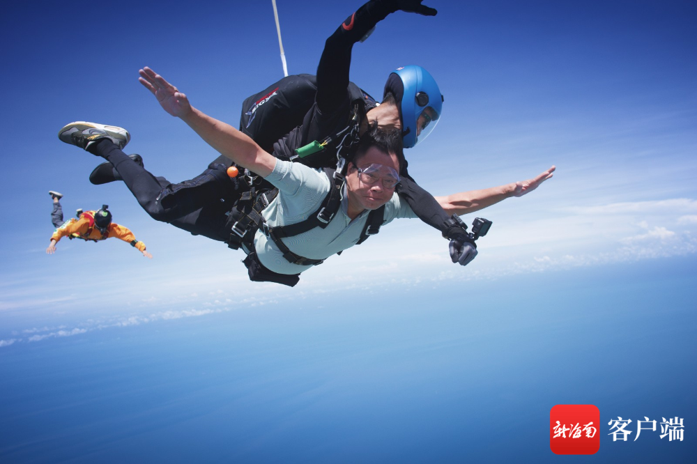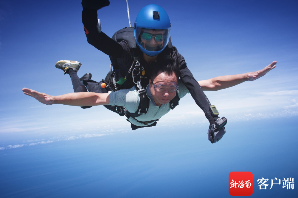 東方市長張長豐體驗4000米高空跳傘。跳傘基地供圖