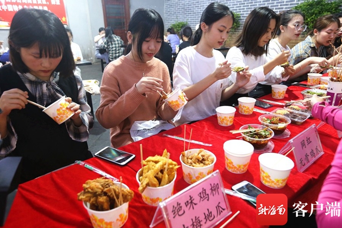 當天晚上,大眾評審團對瓊臺福地美食街的英姐炸炸、極味缽缽雞、蠔氣沖天、御膳壇子雞等4家店鋪的特色美食進行試吃打分。“我比較喜歡吃英姐炸炸,因為該店是該夜市網(wǎng)紅店。”大眾評審團成員歐女士說,該店的炸炸火候掌握得很好,口感特別好。