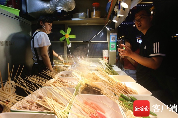 小龍蝦、烤串、甘梅地瓜、花甲、鍋貼、糟粕醋、臭豆腐......夜幕降臨,位于海口市瓊山區(qū)忠介路邊的福地美食街內(nèi)香味四溢,人聲鼎沸。大眾評審團行走在夜市間,從南到北,酸甜苦辣咸等各色美食應有盡有。既有傳統(tǒng)海南美食經(jīng)典味道,又有全國各地特色美食。
