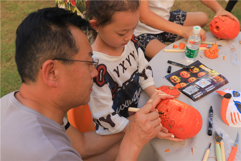 10月31下午,小賓客們前往酒店G層的BBQ草坪,開始對(duì)純白色的面具和南瓜進(jìn)行創(chuàng)作。在家長的陪同和工作人員的指導(dǎo)下小賓客們都發(fā)揮了自己天馬行空的想象力,獨(dú)一無二的萬圣面具和南瓜燈就此完成。貼心的小賓客還會(huì)自己親手制作的面具和南瓜燈送給父母。