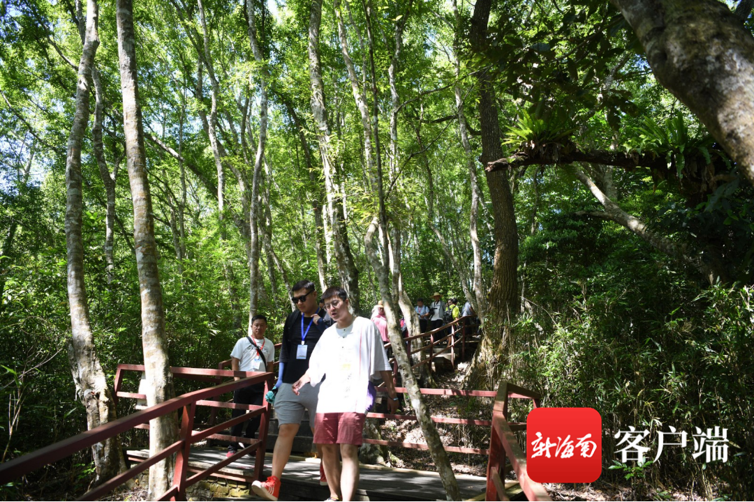 游客在五指山熱帶雨林中漫步。記者 沙曉峰攝