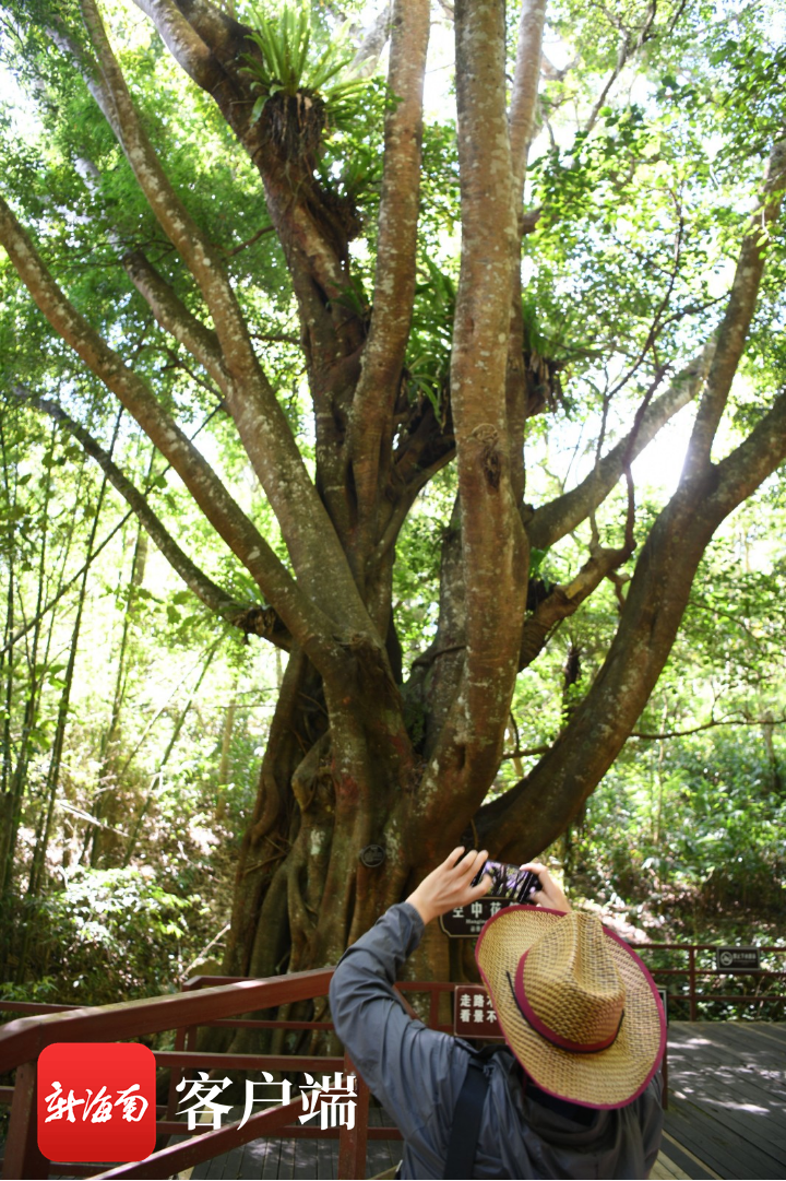 游客在五指山熱帶雨林中拍照。記者 沙曉峰攝