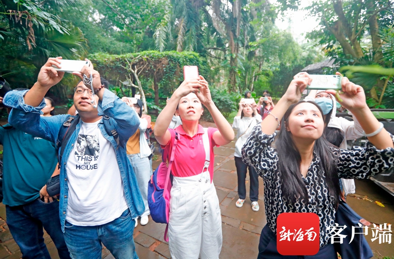 ?歡樂節觀摩采訪團一起走進海南野生動植物園打卡“熊貓兄弟”。記者 汪承賢 攝