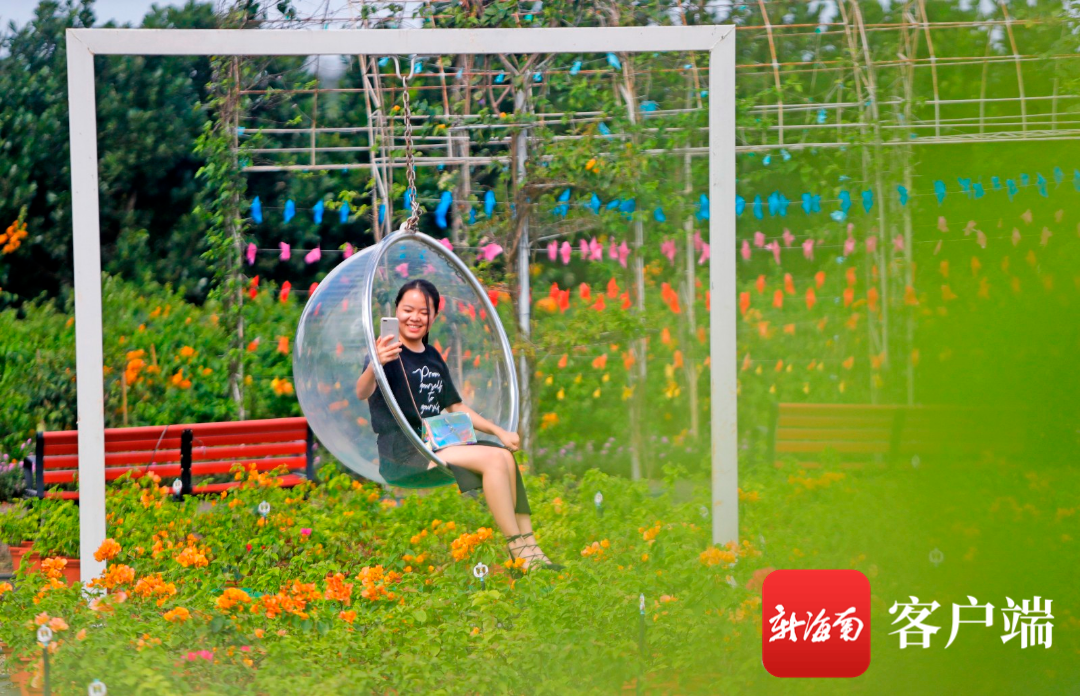 11月22日,記者來到海口三角梅共享農(nóng)莊,發(fā)現(xiàn)園內(nèi)綠意盎然,百花齊放,鮮紅欲滴的三角梅隨風搖曳,不少市民游客在觀景臺散步、拍照。