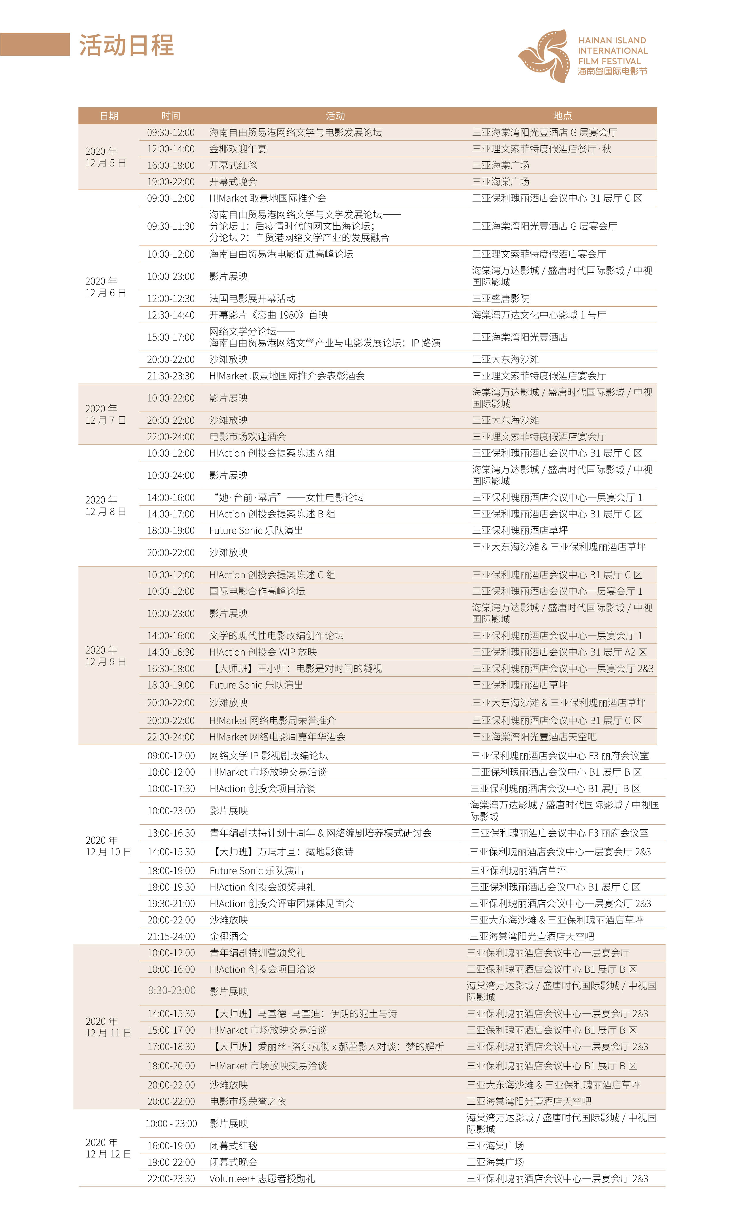 記者12月1日獲悉,第三屆海南島國際電影節組委會發布活動日程。