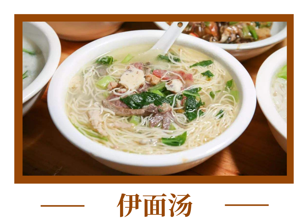 伊面湯加蛋不?海南伊面湯面細柔軟,口感嫩滑,可以選擇的配料很多,常配有切好的青菜、蔥花、蝦仁、蟹柳、豬肉、牛肉、臘腸、豬肝等小料一起烹飪,出鍋后加入在熱油中爆香的蒜頭油就可以食用了。