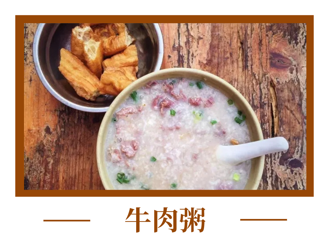 “一份牛肉粥加蛋,在這吃!”點一碗牛肉粥,外加標配的油條,趁熱喝,口感粘稠順滑、牛肉味濃郁,偶爾還能嚼到里面的雞蛋。再吃塊滑嫩的牛肉,滿足~
